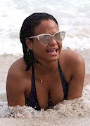 AMAZING bikini candids of Christina Milian going for a dip in the ocean at the beach in Miami! What’s not to like? Ass, titties.. its all amazing and love the shots of her on all four. Great view of her tits.