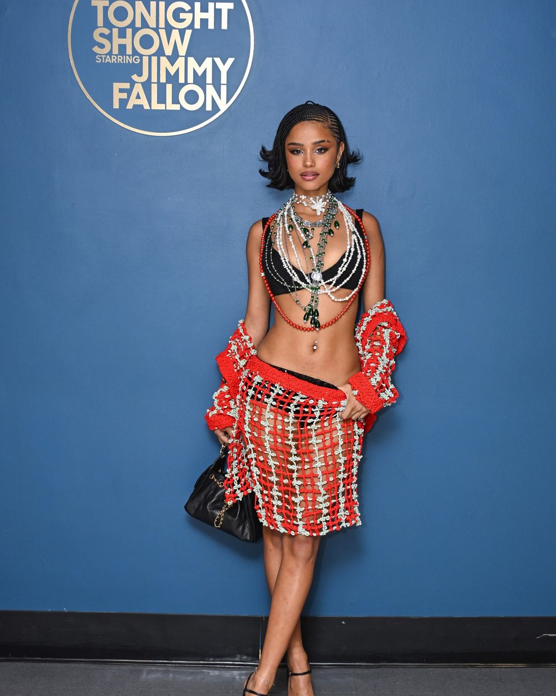 Tyla looking sexy while performing on top of a giant heel shoe while appearing on The Tonight Show Starring Jimmy Fallon!